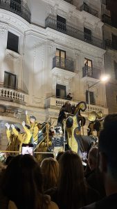- 豪華絢爛な山車: それぞれの山車は独自のテーマで飾られ、光や音楽で演出されます。特に三人の王を乗せた山車は、最も注目されるポイントです。たくさんの人の中写真を撮るのがとても大変でした。どれがどの三賢者なのか残念ながら分からず。一人撮れなかったし‥